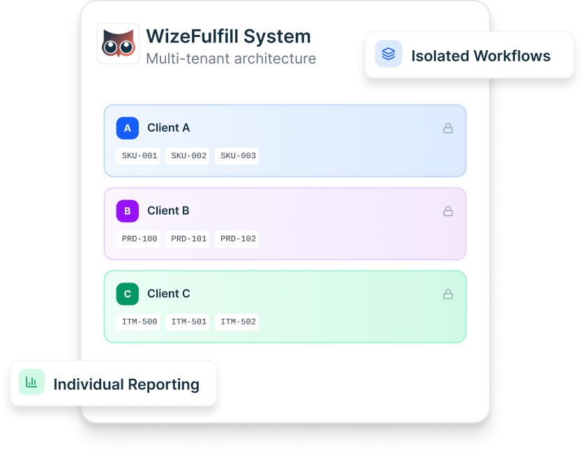 WizeFulfill removes operational friction by letting you configure workflows for each client without engineering, while giving your team real-time inventory visibility across orders and locations.